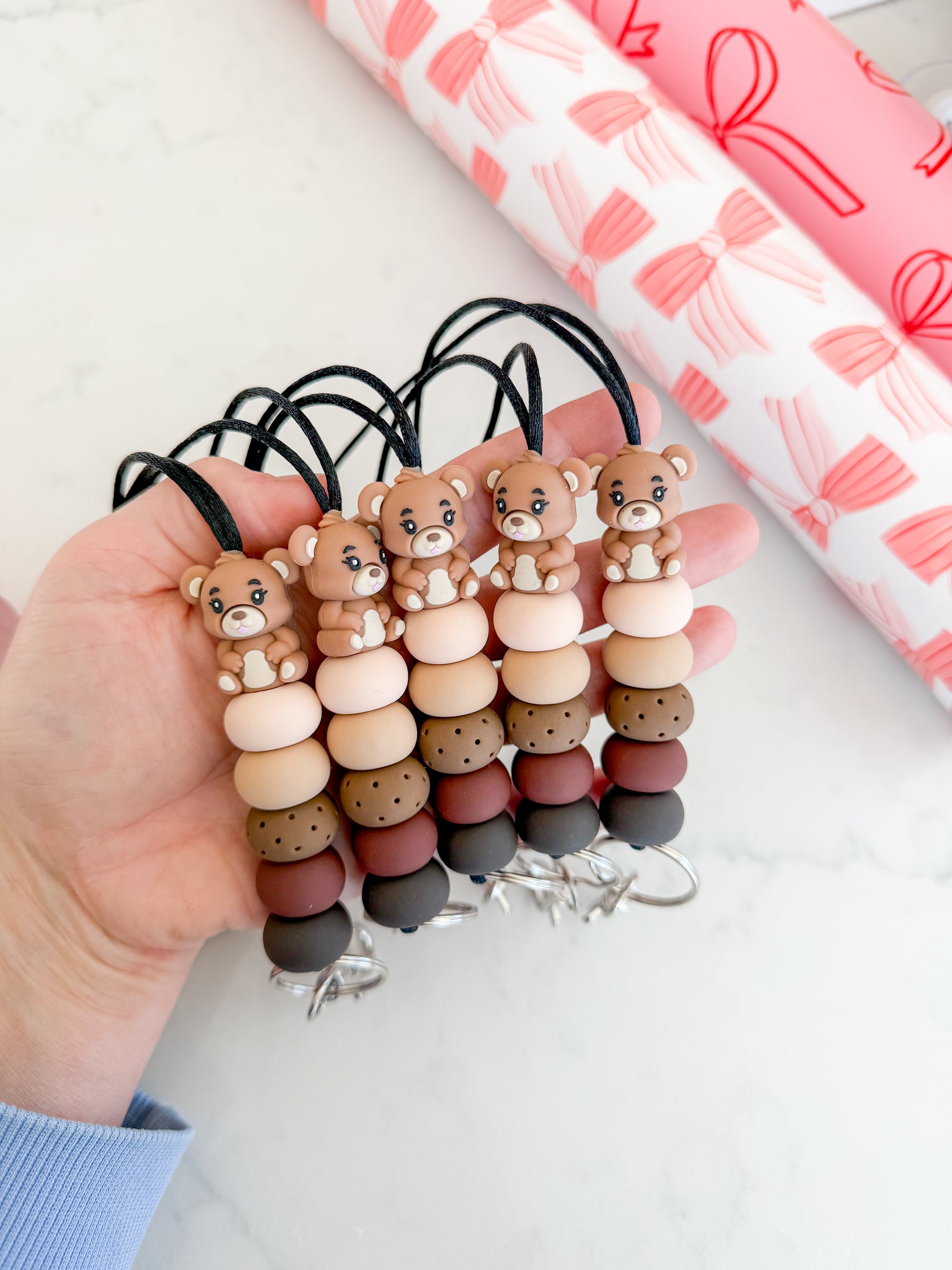 We recommend hanging lanyards when not in use and treating them like you would any other necklace. Beads are durable but not indestructible. Please handle and store with care.
