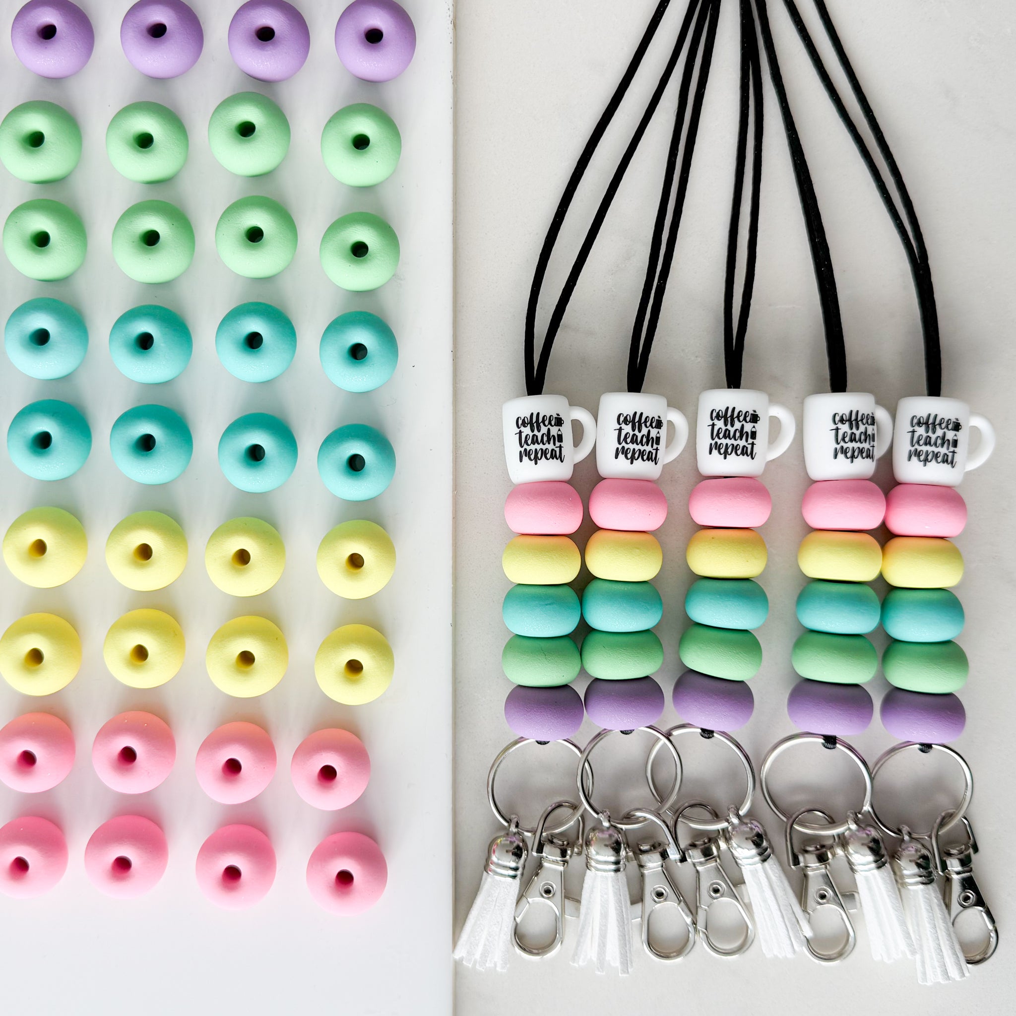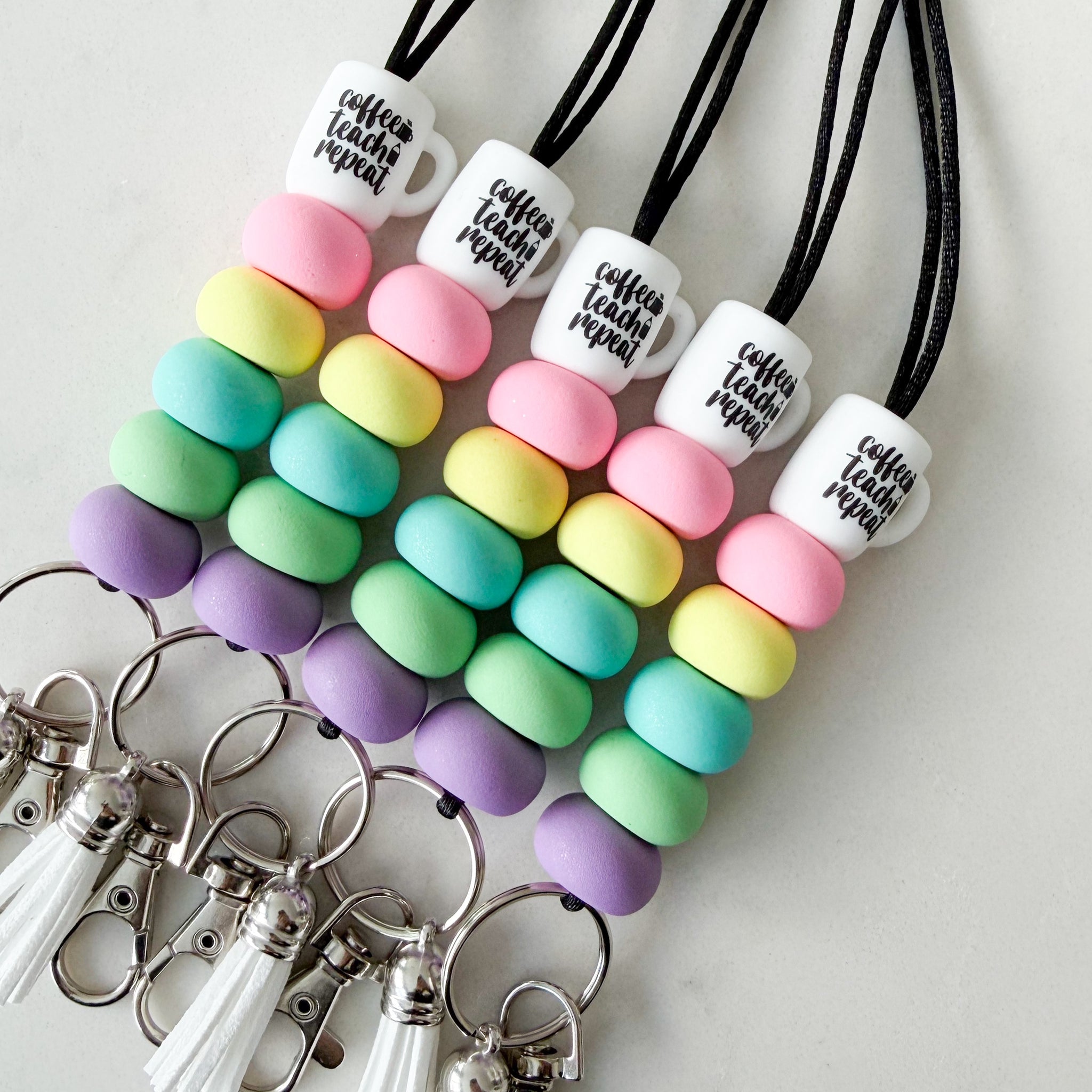 Coffee Teach Repeat Rainbow Lanyard