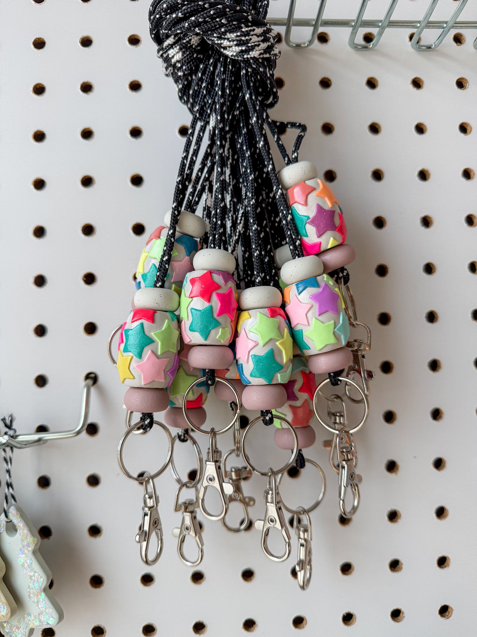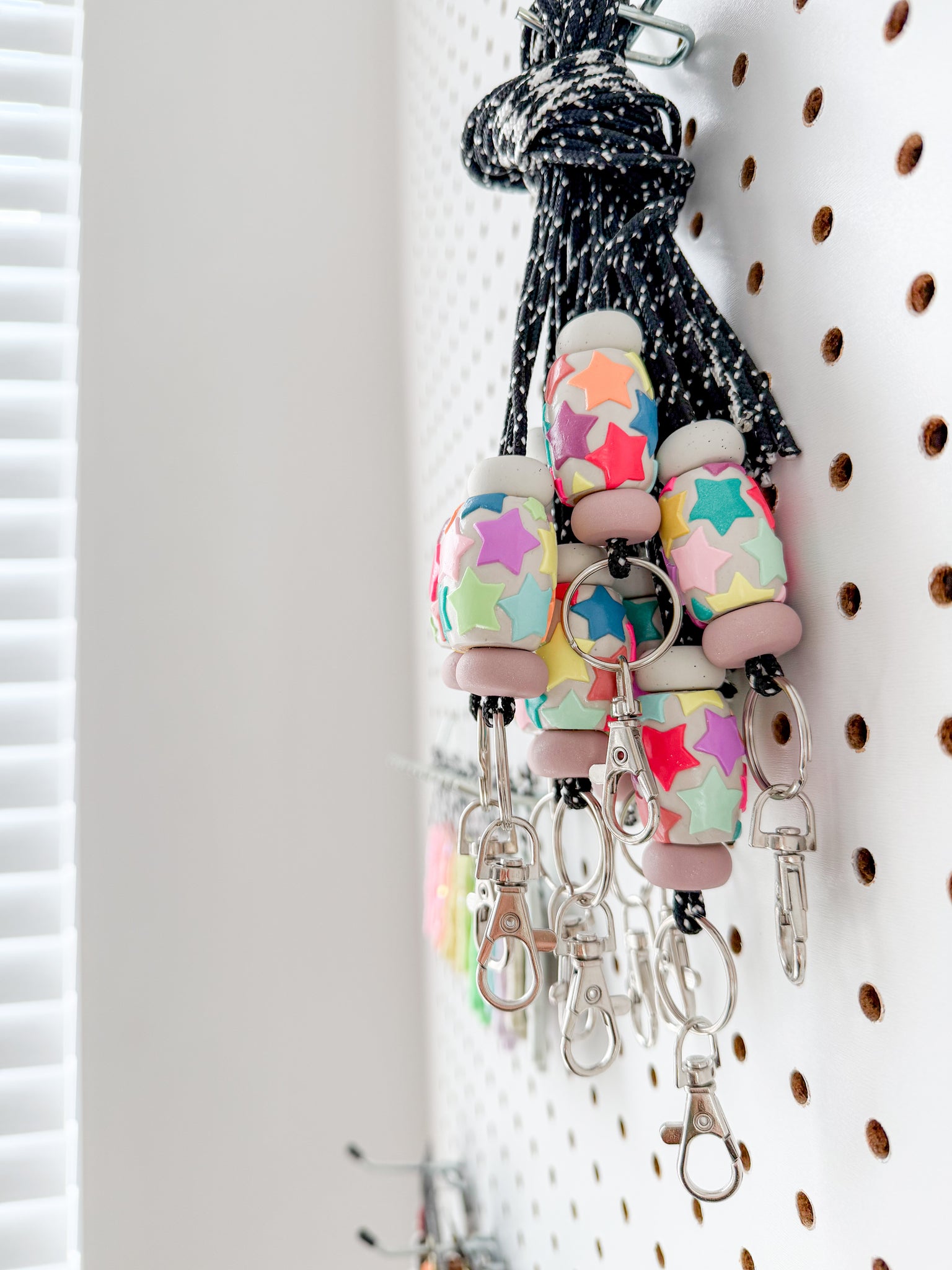 We recommend hanging lanyards when not in use and treating them like you would any other necklace. Beads are durable but not indestructible. Please handle and store with care.