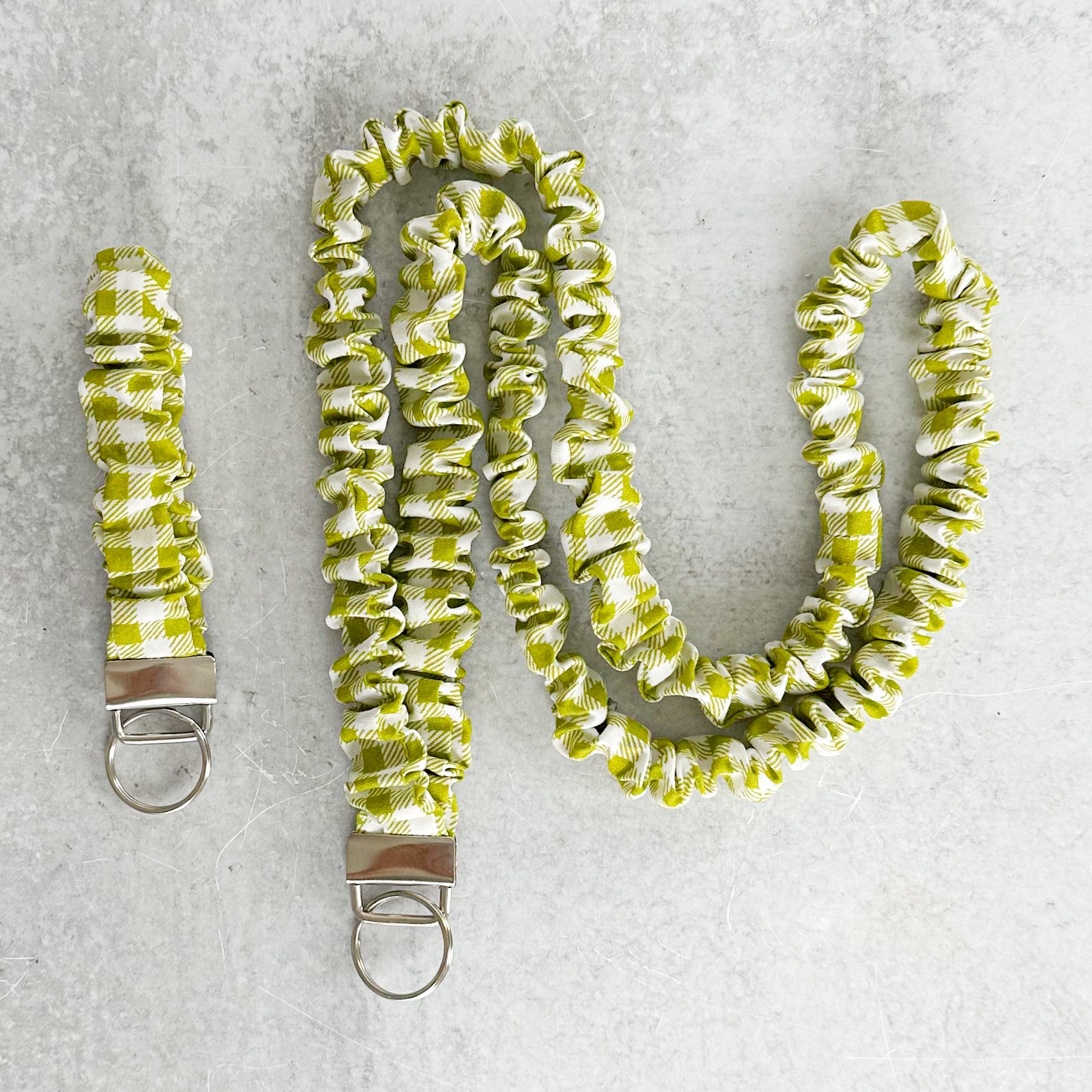 Green Gingham Scrunchie Lanyard and Keychain Set