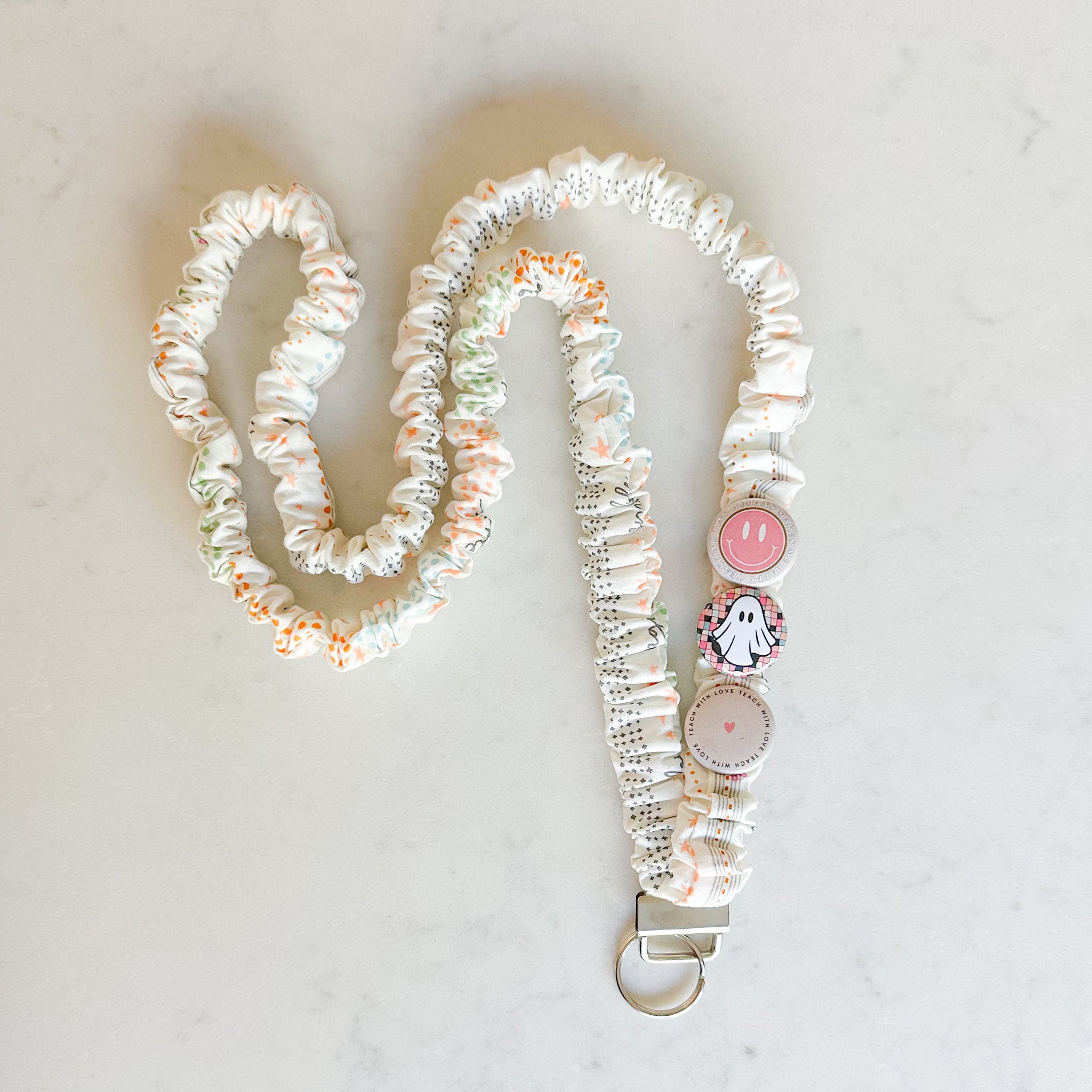 *Please not, lanyards will stretch when weight is added to the key ring. They will also stretch and settle or loosen over time and become softer and comfier! This is normal and expected/anticipated and part of the scrunchies lanyard obsession!